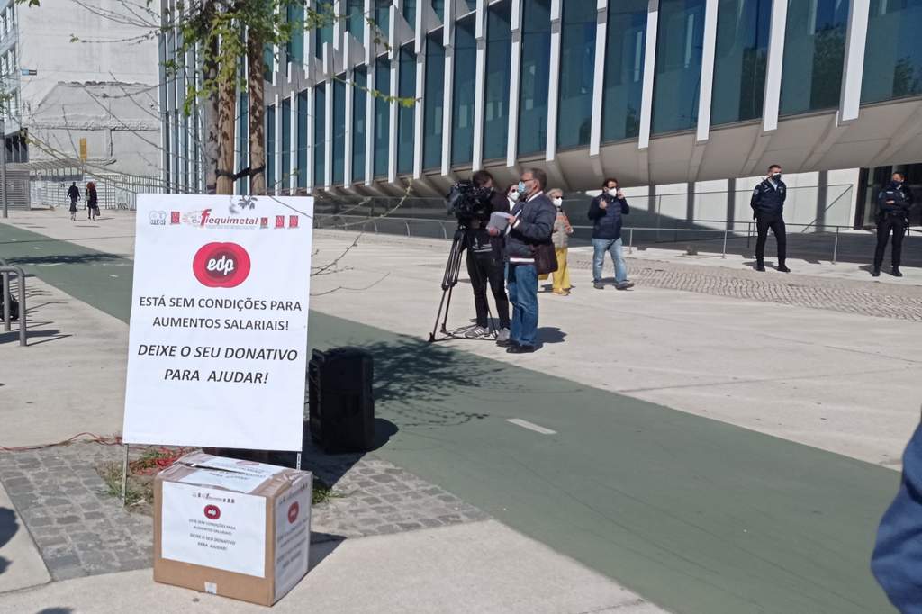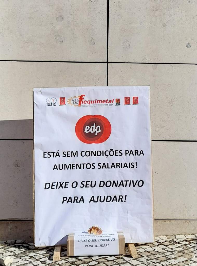 Caricaturando a insaciável sede de lucros e dividendos que move a administração, as organizações sindicais simularam a recolha de «uma esmola para a EDP».