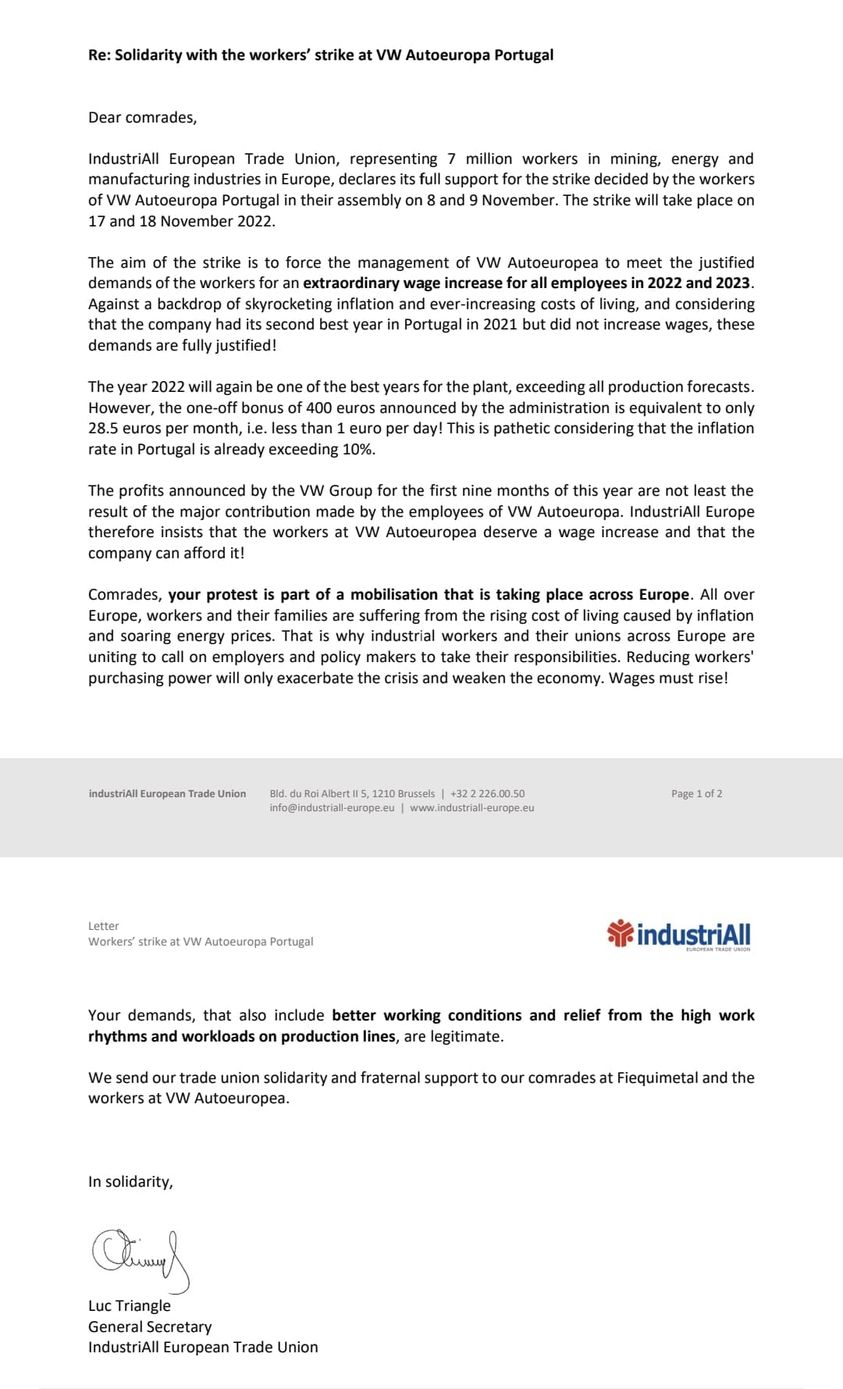 - Persistem razões para a greve na VW Autoeuropa dias 17 e 18 (15.11.2022)