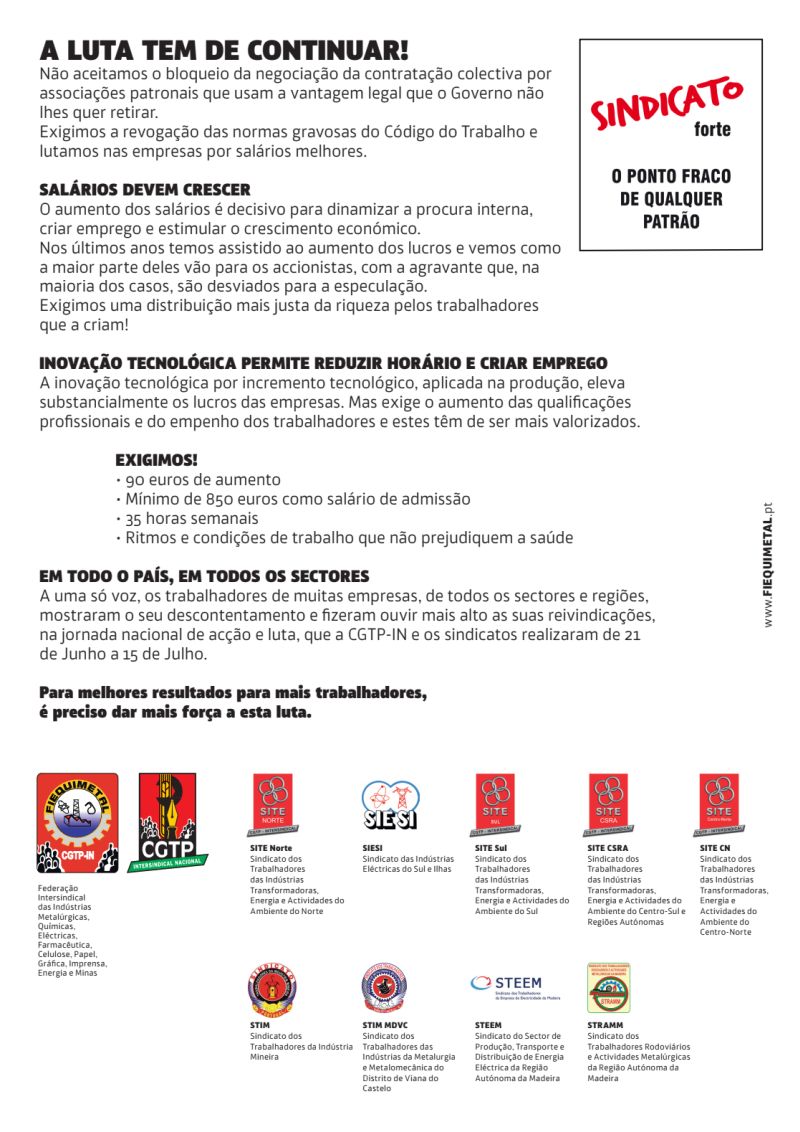 Insiste-se na exigência da revogação das normas gravosas do Código do Trabalho, a par da luta nas empresas por salários melhores.