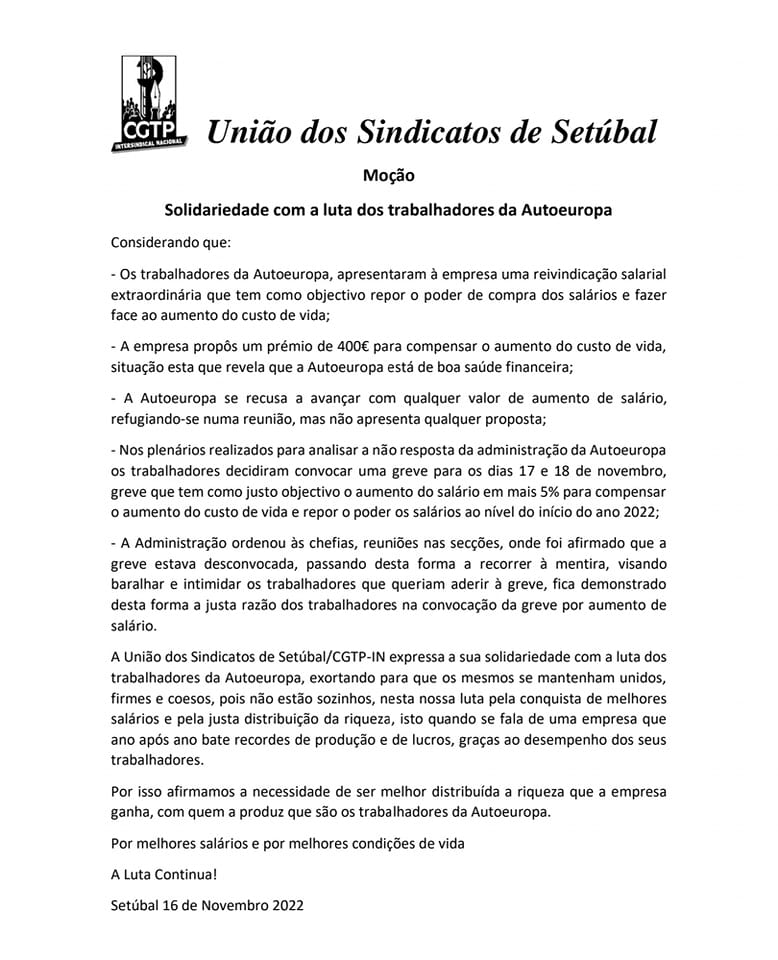 - Persistem razões para a greve na VW Autoeuropa dias 17 e 18 (15.11.2022)