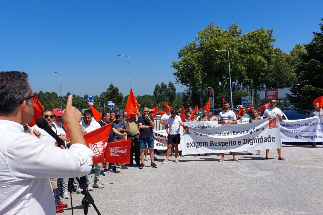 Confirmando o que tinham já mostrado em lutas recentes, os trabalhadores da Browning Viana aderiram em força à greve, no dia 17, e à concentração no exterior da fábrica, mostrando-se unidos e determinados na defesa de aumentos salariais e fim das discriminações.