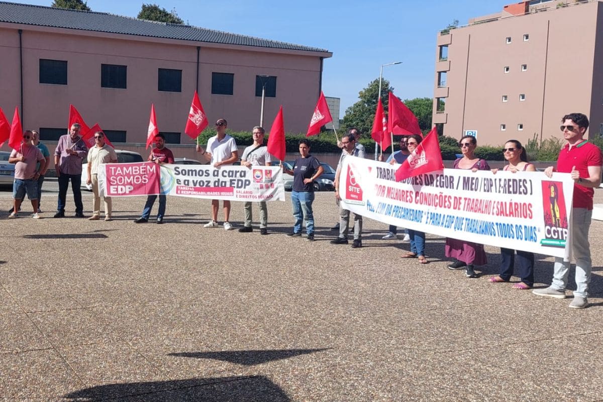 Ontem, primeiro de quatro dias de greve dos trabalhadores da telecontagem da E-Redes (Grupo EDP), contratados pela Egor, a adesão foi de quase cem por cento. Frente ao edifício da Altice, no Porto, realizou-se uma concentração (na foto).