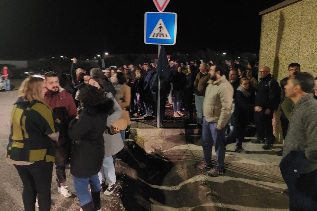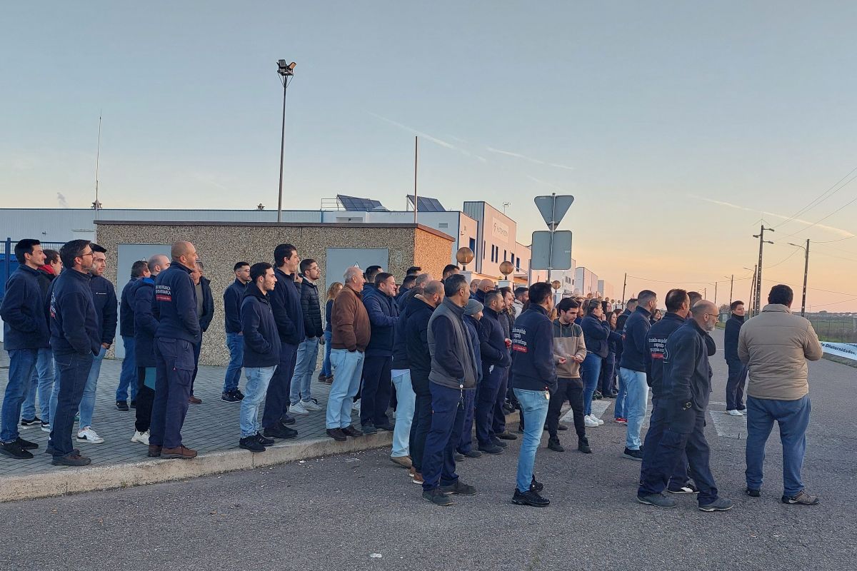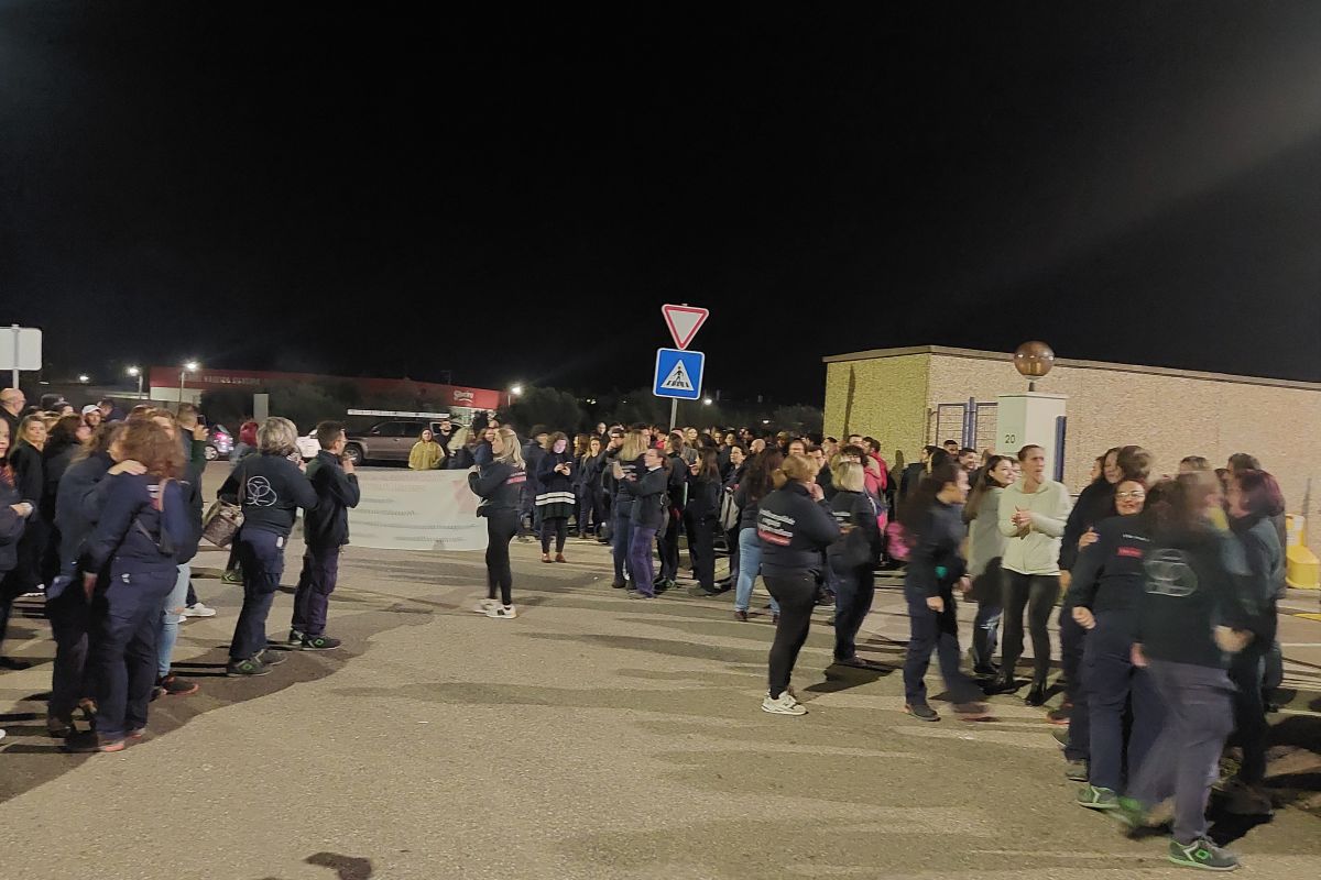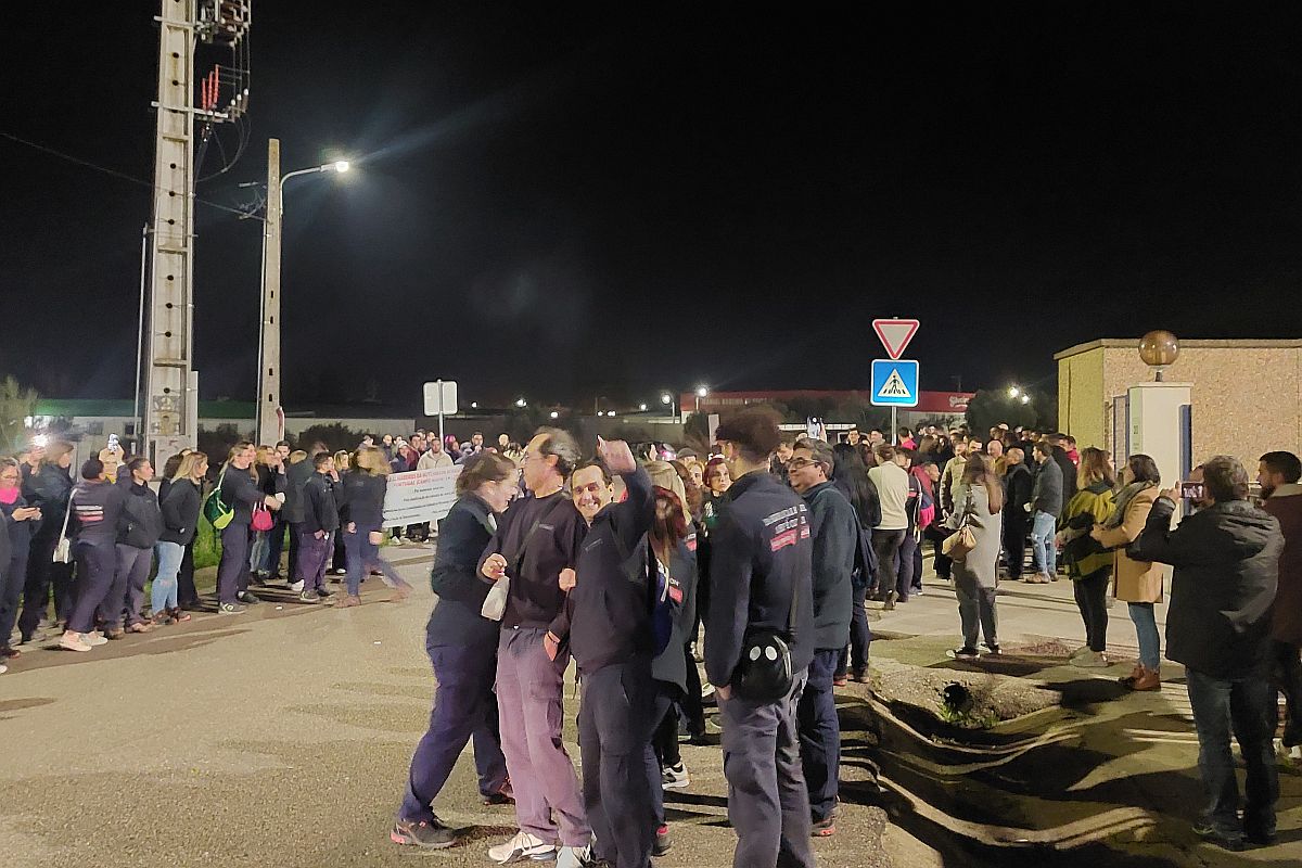 Trabalhadores concentrados no exterior da fábrica, nos primeiros dois turnos