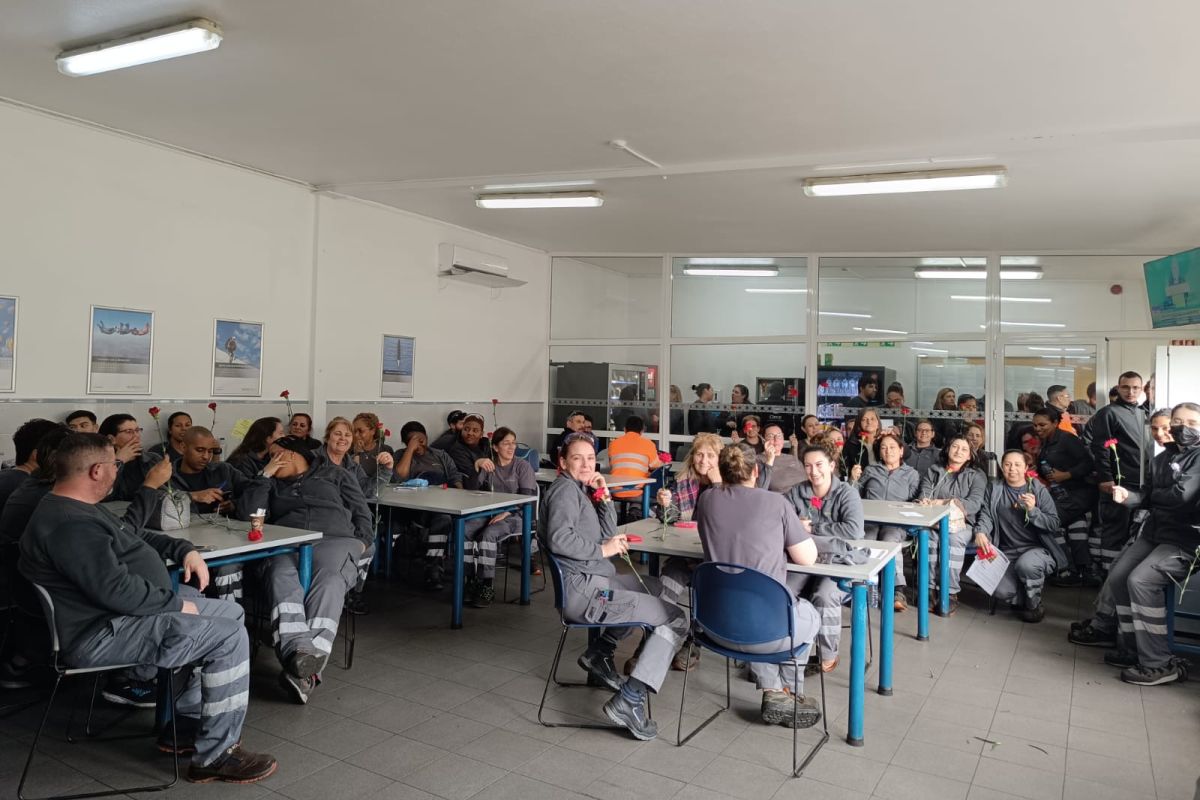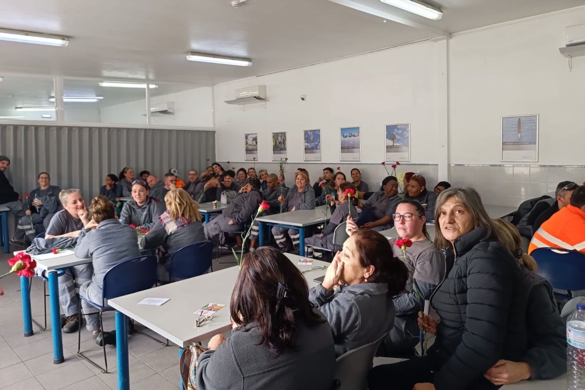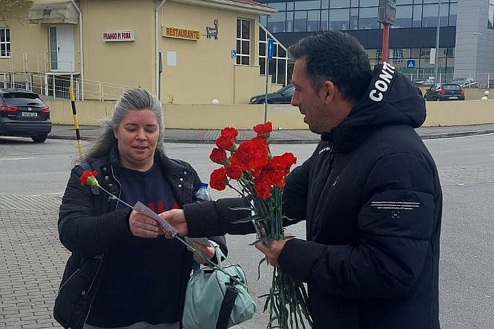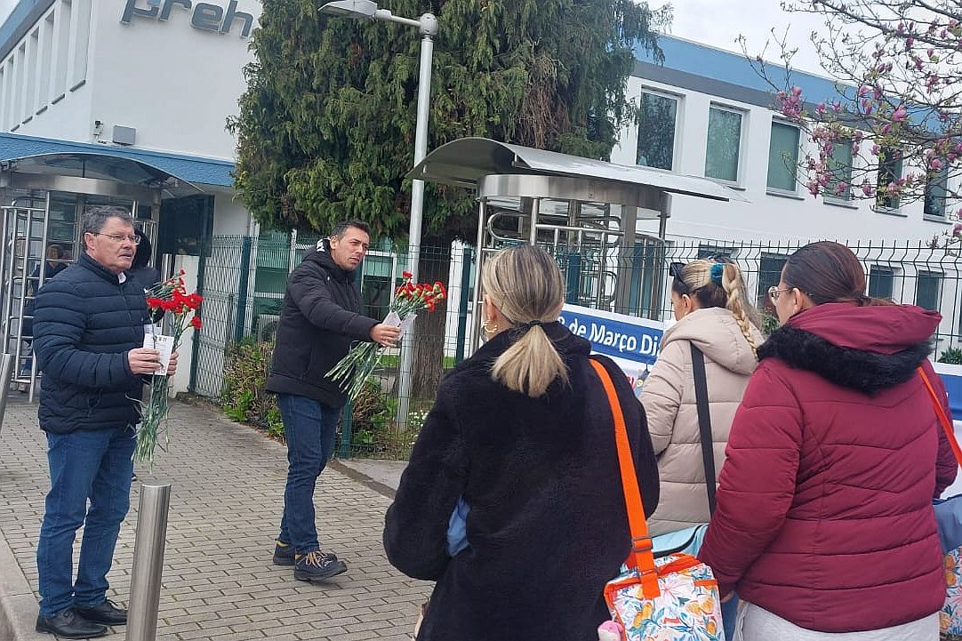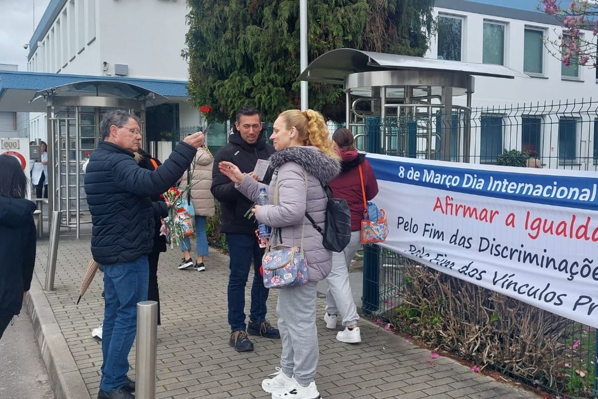 O Secretário-Geral da CGTP-IN, Tiago Oliveira, participou na distribuição de cravos às trabalhadoras da Preh Portugal, na Trofa.