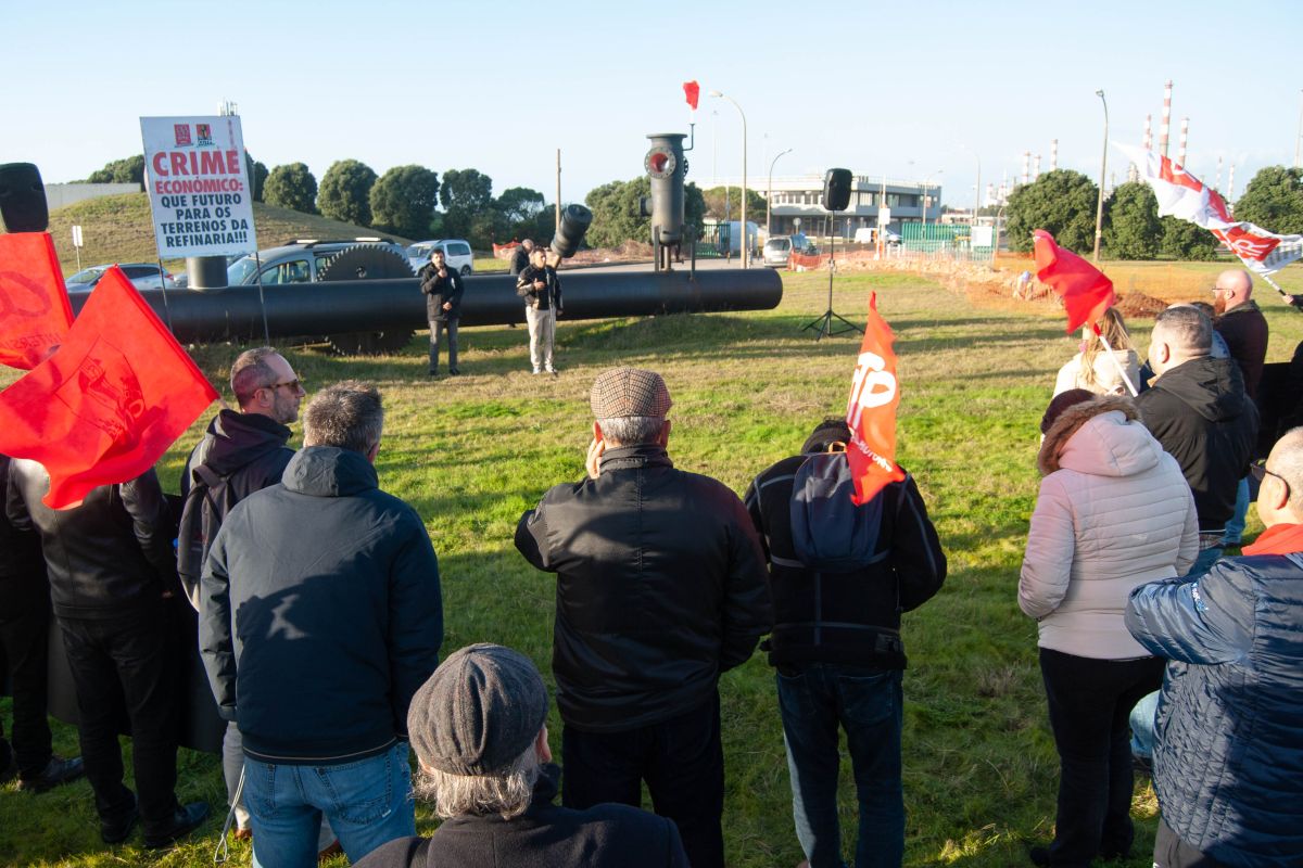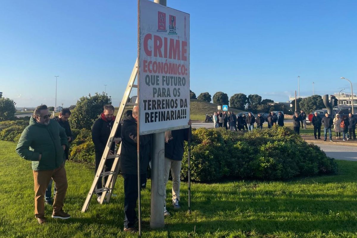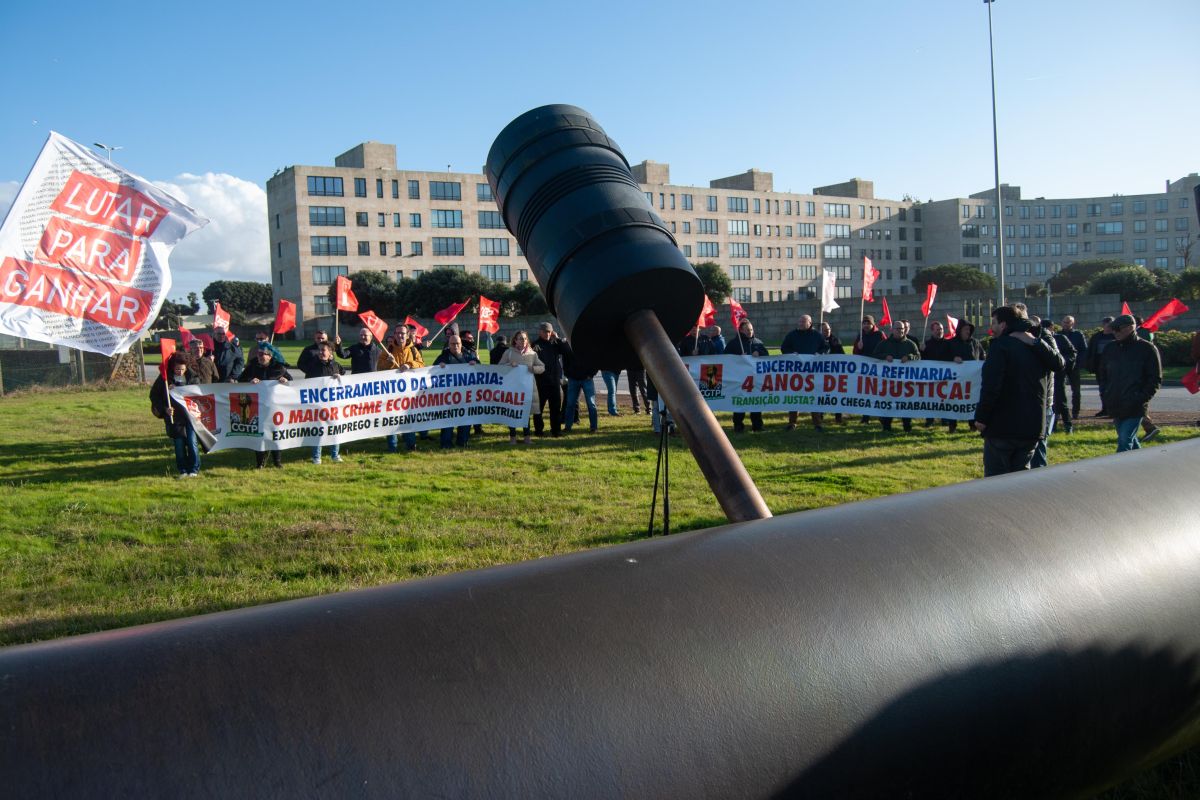 No final da iniciativa foi deixado no local um painel, reafirmando que o encerramento da refinaria foi um crime económico.