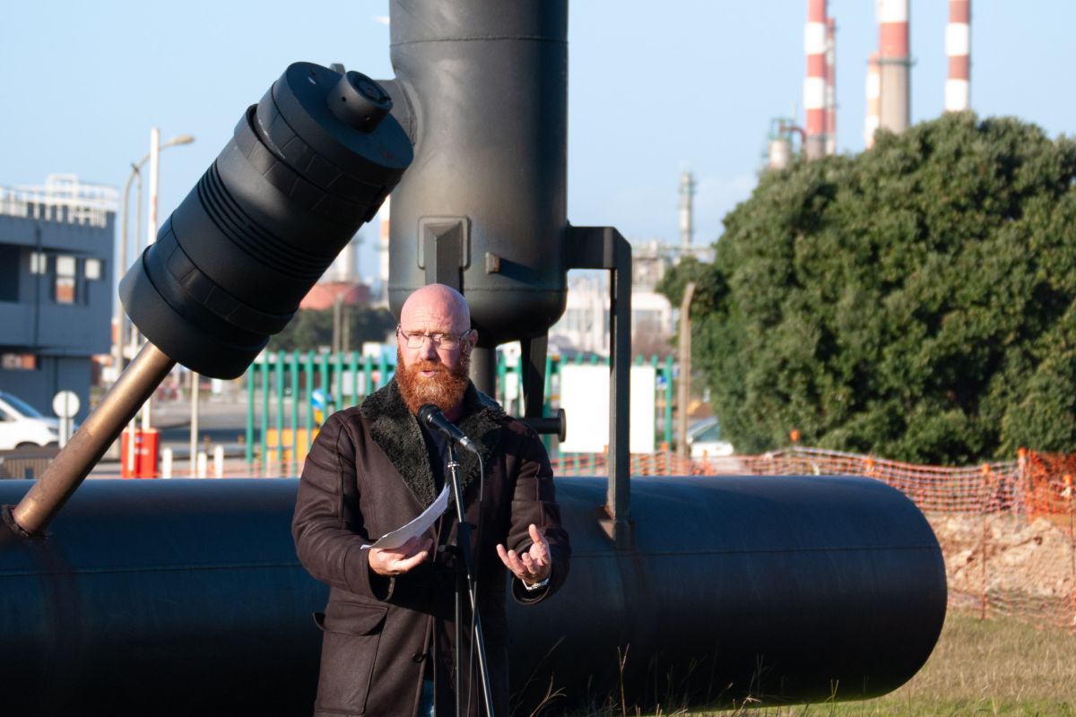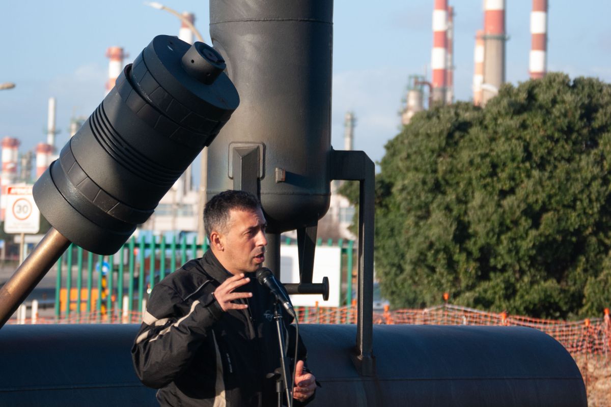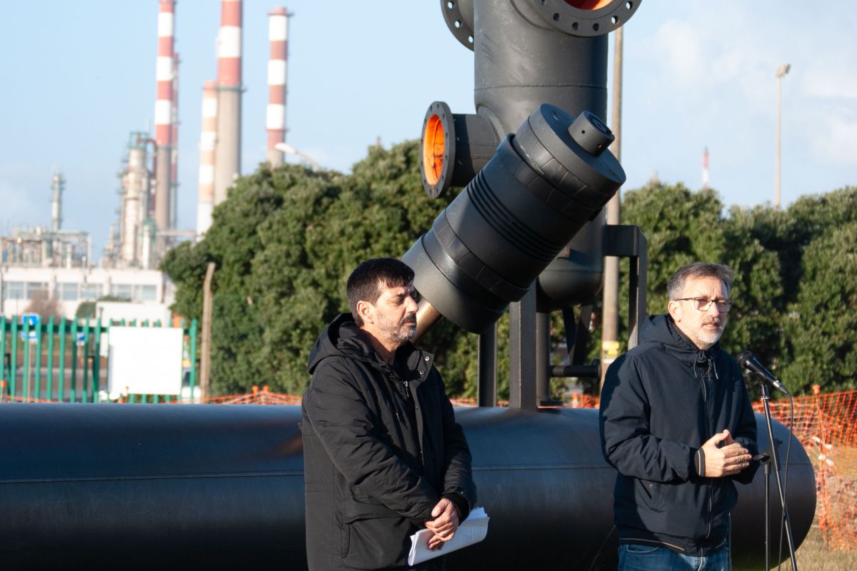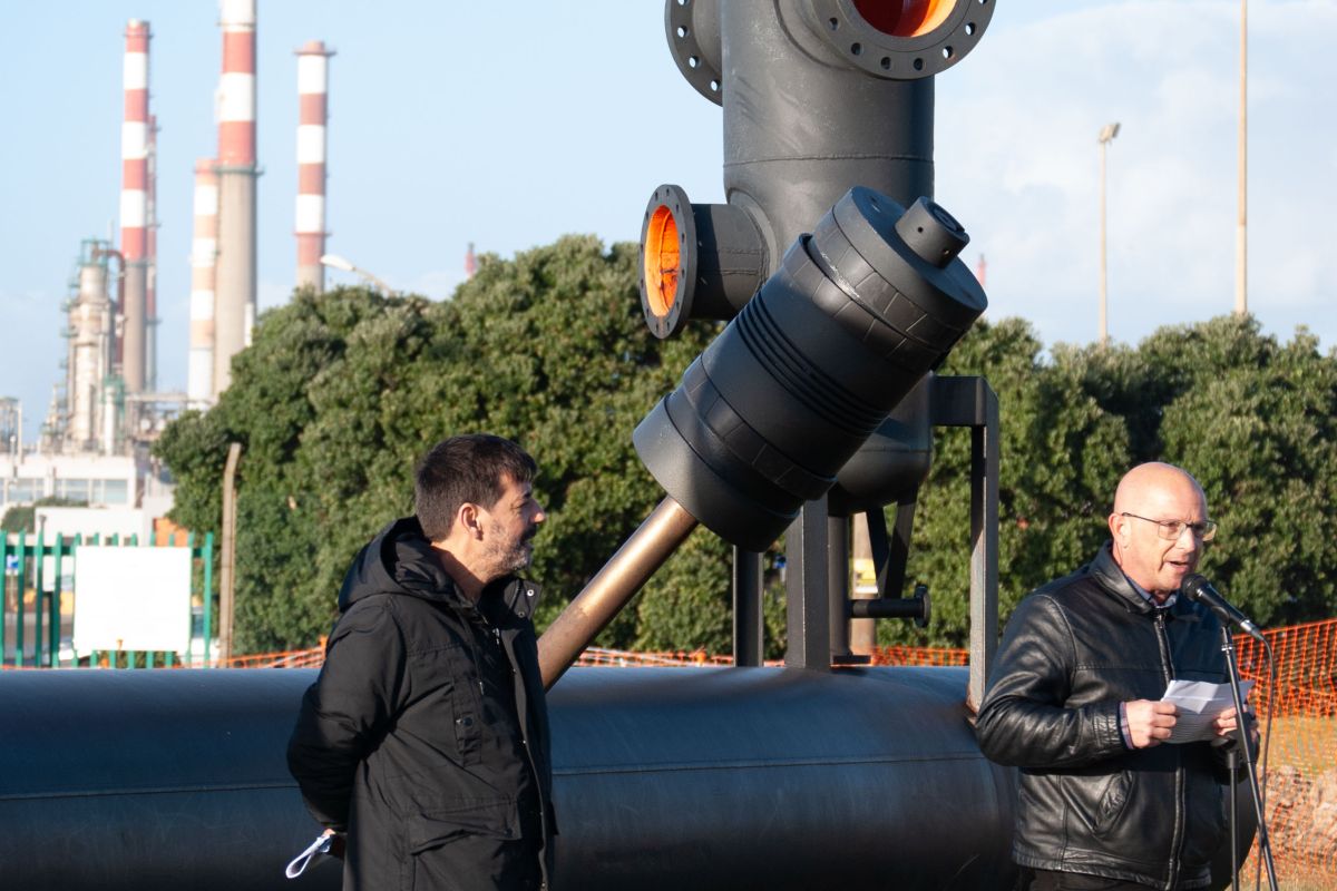 No final da iniciativa foi deixado no local um painel, reafirmando que o encerramento da refinaria foi um crime económico.