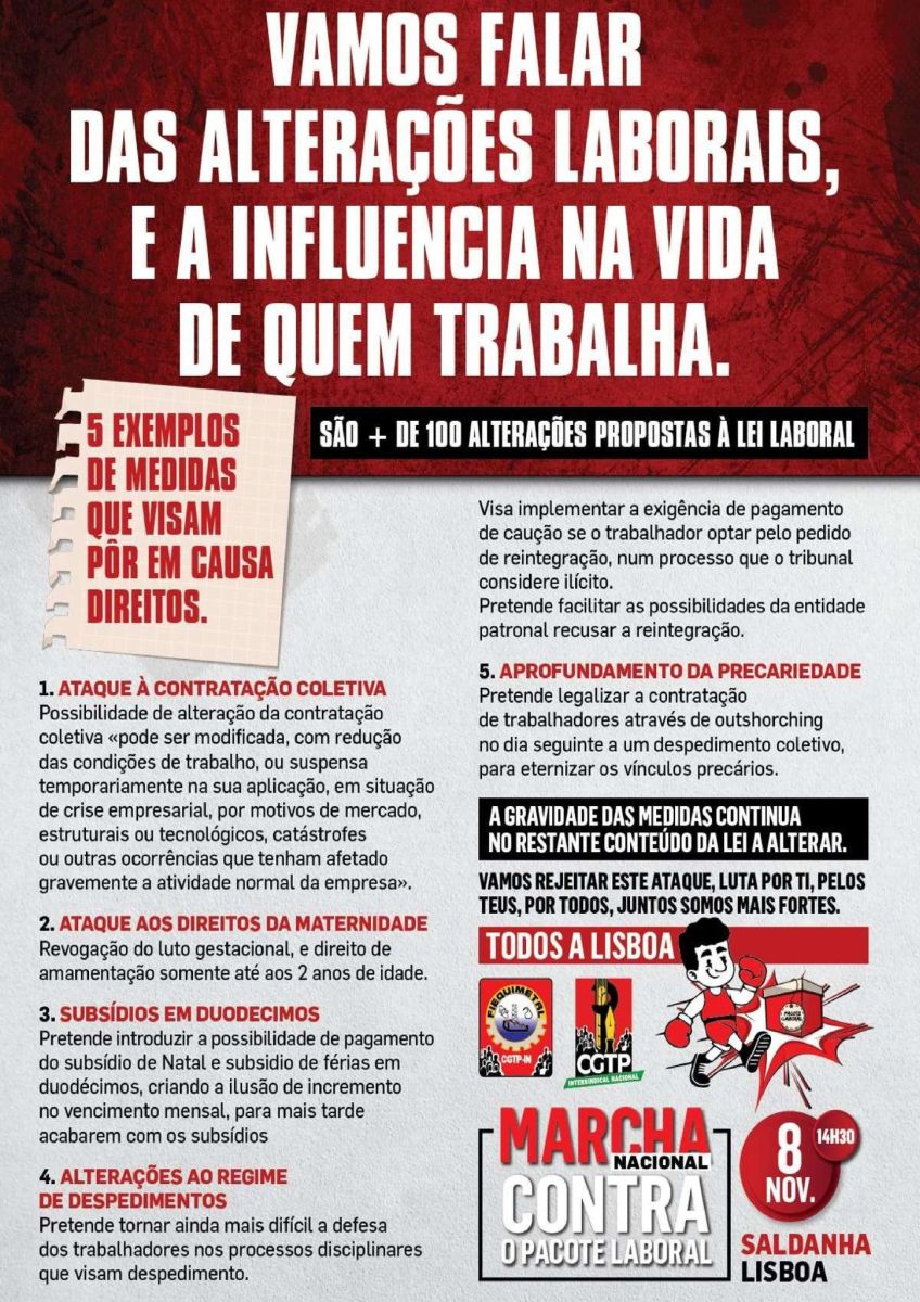 Amanhã, às 14h30, estaremos no Saldanha. Com os trabalhadores de todos os ramos de actividade, do sector privado e da Administração Pública, vamos mostrar nas avenidas de Lisboa que este pacote laboral é para retirar e que vamos continuar a luta também por melhores salários e direitos.