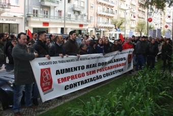 Cerca de duzentos delegados e dirigentes sindicais de empresas fabricantes de material eléctrico e electrónico manifestaram-se, esta quinta-feira, em frente à sede da associação patronal ANIMEE, em Lisboa, para exigir a normalização do processo de negociação do contrato colectivo de trabalho, colocando termo ao bloqueio da contratação colectiva, e entregar a Carta Reivindicativa para 2017, em que se exige aumentos salariais justos e melhores condições de trabalho.