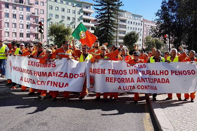 Os trabalhadores chegaram de autocarro, reunindo-se na Avenida Guerra Junqueiro, de onde desfilaram até à Praça de Londres, em manifestação, gritando palavras de ordem e cantando o hino «Santa Bárbara Bendita».