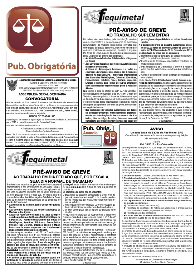 - Pré-avisos publicados conforme obrigação legal num jornal diário (CM, 7.12.2017, pág. 7)