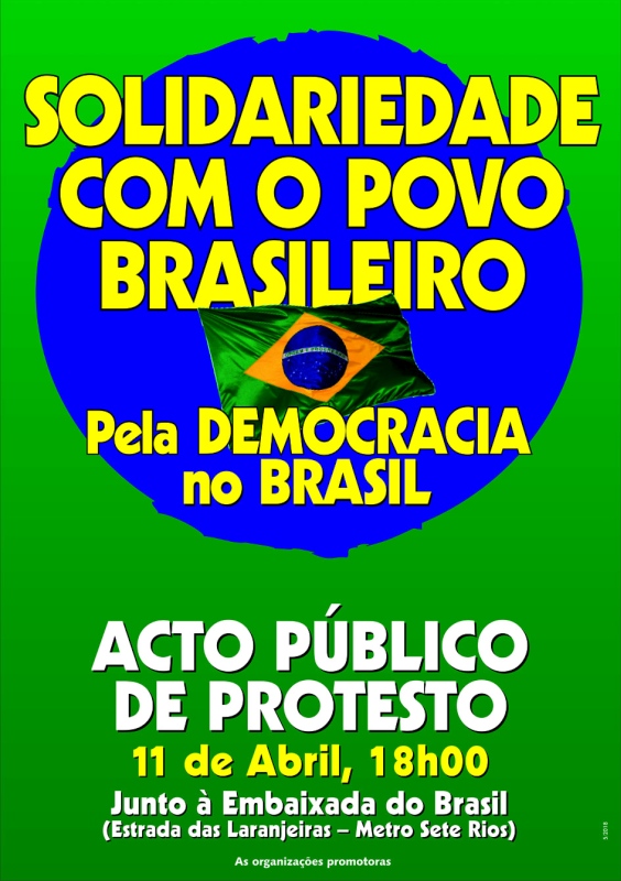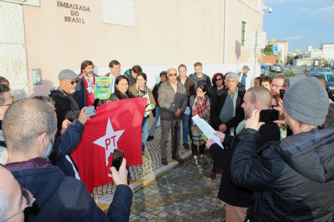 No local foi lido o texto e foi anunciado um acto público, sob a palavra de ordem «Solidariedade com o povo brasileiro, Pela democracia no Brasil», a realizar na quarta-feira, dia 11, às 18h00, junto à Embaixada do Brasil (Estrada das Laranjeiras 144 – Metro Sete Rios) .