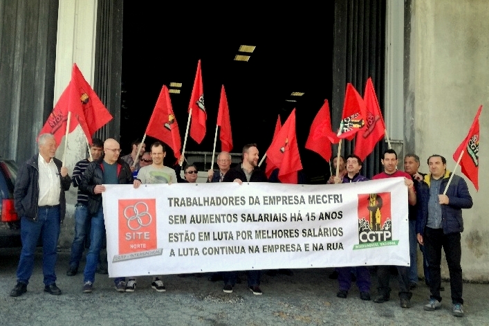 Os trabalhadores da Mecfri Indústria de Refrigeração, em Quinchães (Fafe), fizeram greve nas quatro sextas-feiras de Abril. Na última, dia 27, concentraram-se no exterior das instalações, exibindo uma faixa a denunciar que nos últimos 15 anos não há aumentos salariais na empresa (na foto).