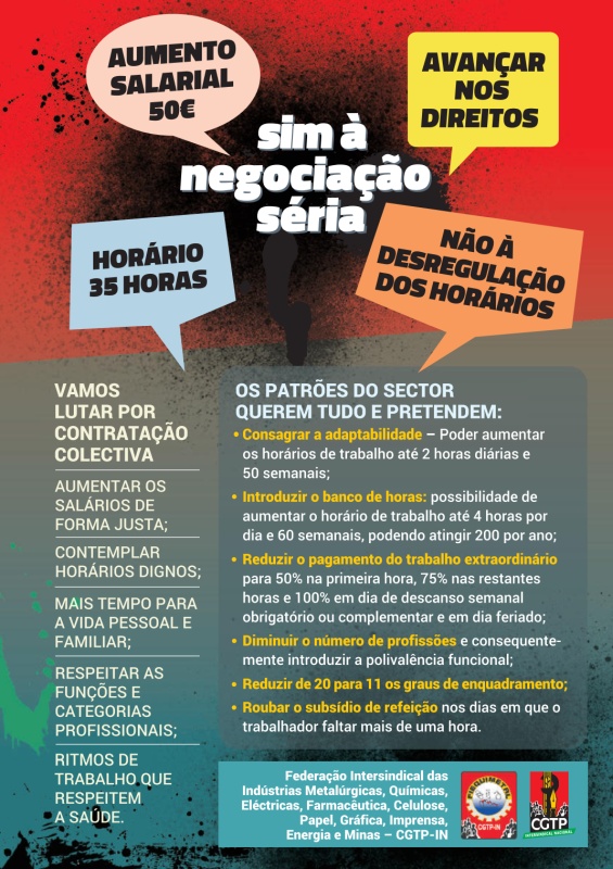 - não alterar para pior o Código do Trabalho, defender a contratação e a negociação colectivas.
